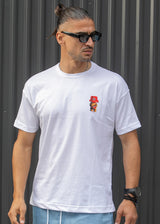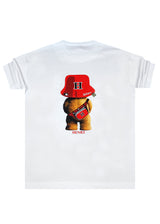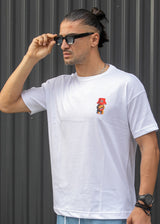 T-shirt σε άνετη γραμμή. Στρογγυλή λαιμόκοψη και κοντά μανίκια. Τυπώματα σε αντίθετο συνδυασμό μπροστά και πίσω.