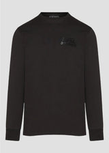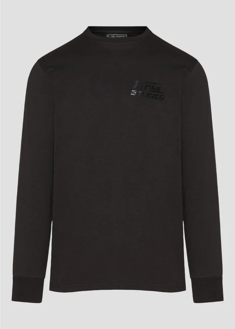 Μπλούζα μακρυμάνικη μαύρη με ανάγλυφο τύπωμα. Ίσιο τελείωμα με ανοίγματα στο πλάι