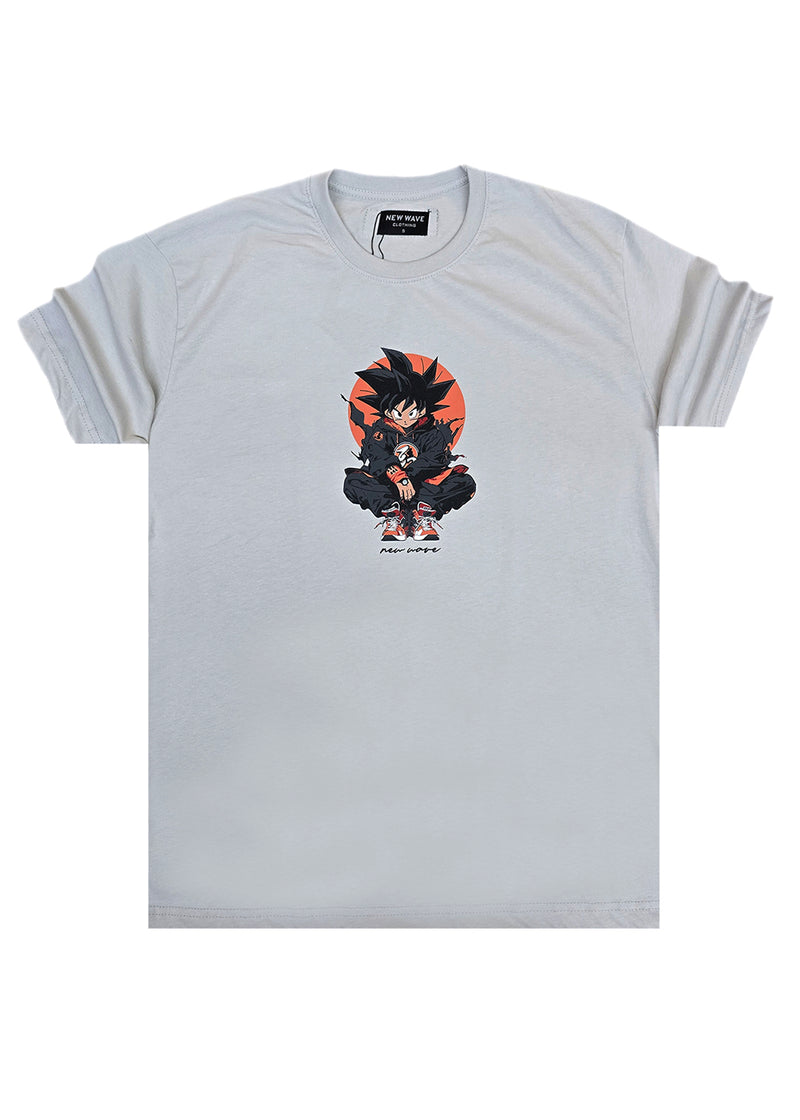 Anime style meets streetwear! Η νέα κοντομάνικη μπλούζα New Wave Clothing 251-36 σε ανοιχτό γκρι χρώμα εμπνέεται από τον εμβληματικό χαρακτήρα Songoku .