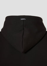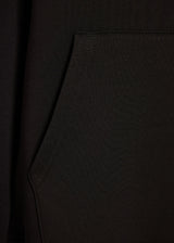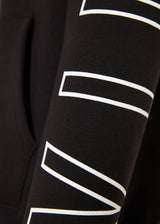 Φούτερ μαύρο με τύπωμα στο ένα μανίκι. Ενιαία μπροστινή τσέπη και κουκούλα χωρίς κορδόνι. Τελείωμα με λάστιχο ριπ