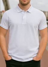 Κοντομάνικη μπλούζα τύπου πόλο GUF - A-150-2 - basic polo slim fit tee λευκό