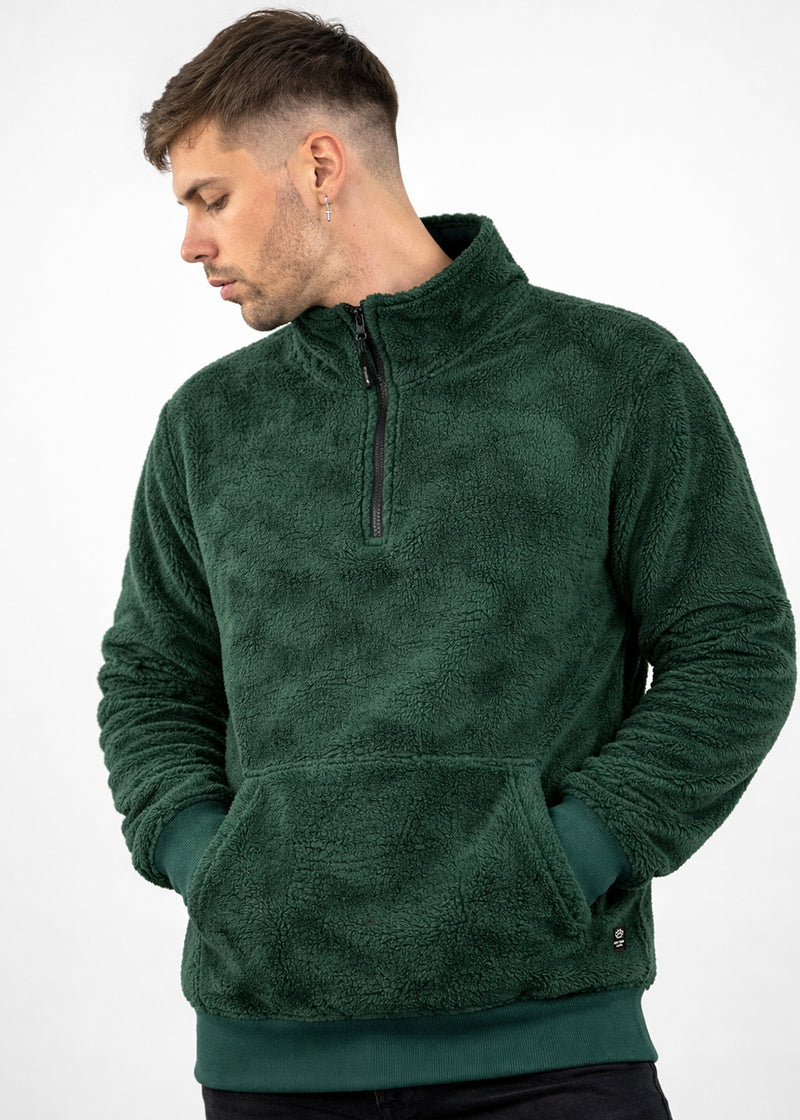 Ανδρική φούτερ με κολάρο New wave clothing - 232-39 - half zip sherpa design πράσινη