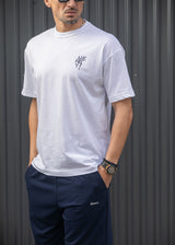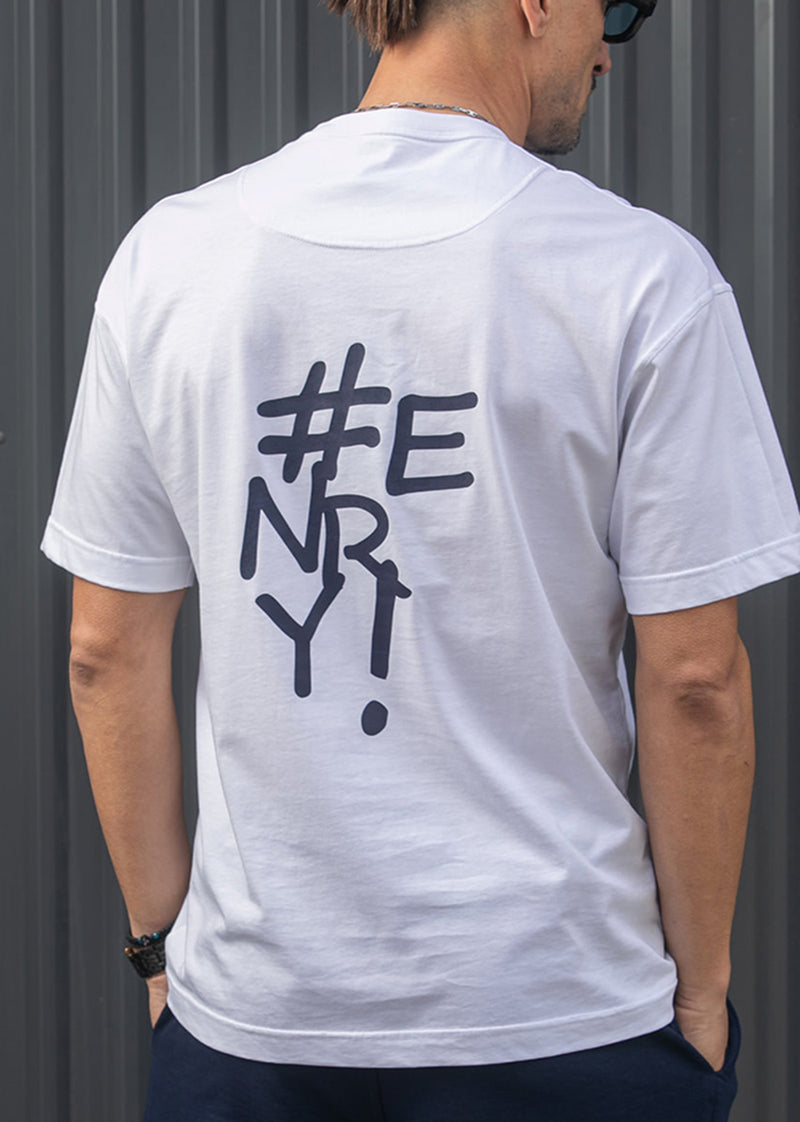 T-shirt σε άνετη γραμμή. Στρογγυλή λαιμόκοψη και κοντά μανίκια. Τυπώματα σε αντίθετο συνδυασμό μπροστά και πίσω.