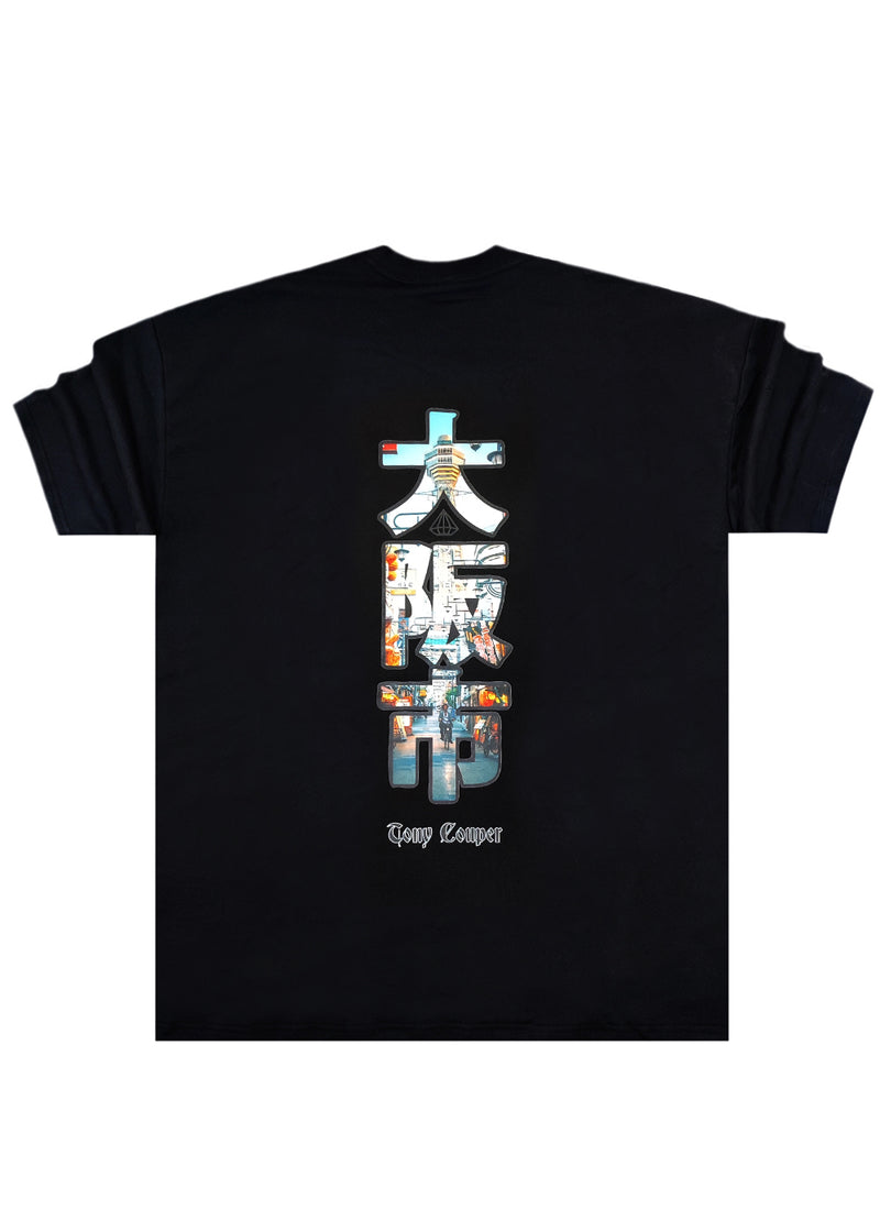 Tony couper Ανδρική κοντομάνικη μπλούζα μαύρη oversized t-shirt Black Japan Letters T26/1-black